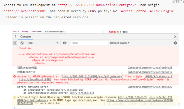 问题产生情况描述:今天使用VUE 调用SpringBoot 后台服务接口,提示跨域,错误截图如下: