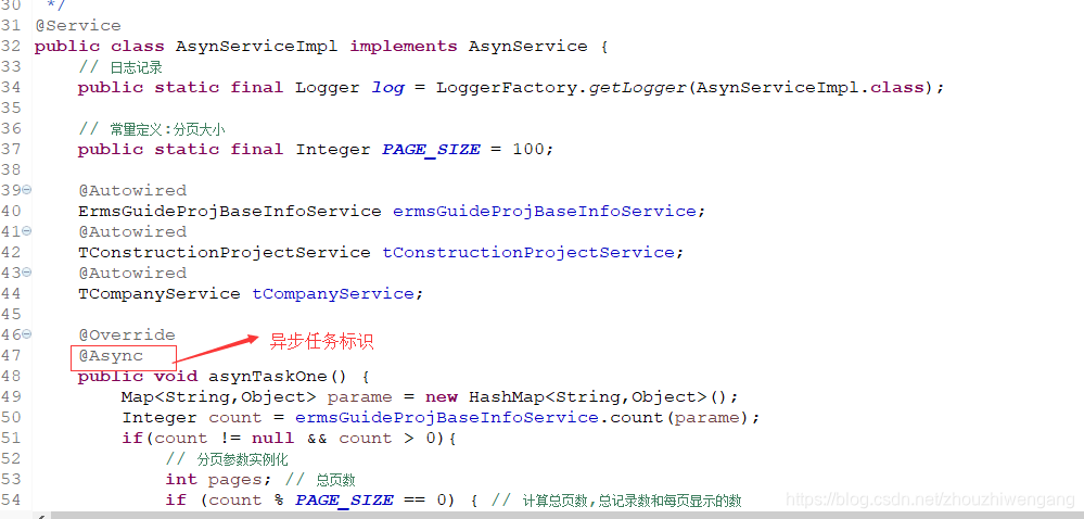 注意,这里的异步方法,只能在自身之外调用,在本类调用是无效的