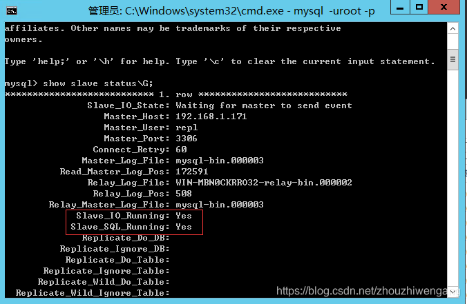只需要关注这两个参数是否为Yes,其他状态No,connecting均代表有错误!