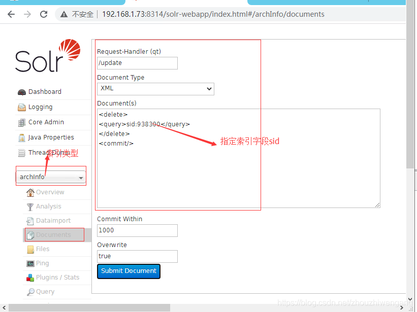 Solr 控制台移除指定索引数据或者全部索引数据